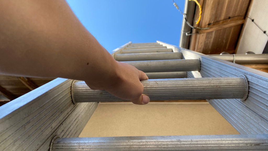 プロであれば、命綱や足場など、安全対策を万全にして行いますが、素人の方が足場を作るのはさすがに難しいでしょう。中途半端な足場を作ってそこへ体重を乗せればかえって危険です。せめて、命綱になるような細くて丈夫なロープやをホームセンターなどで買って、屋根の上で引っかかりのある部分に繋げ、できればハーネスなどで強度を上げて自分自身の身体にも結びつけておきましょう。さらに、必ず誰か他の人に地上で立ち会ってもらうようにしてください。日曜大工のお父さんが、ひとりで高所作業をするのが大惨事の元です。